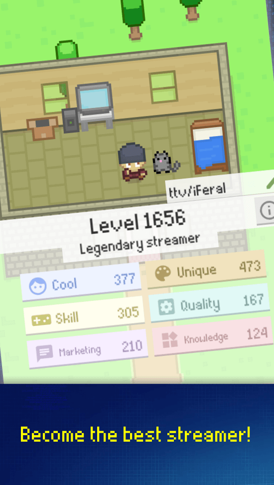 Spiele jetzt und genieße die Beliebtheit eines berühmten Streamers! Starte deine Traumkarriere als Streamer, passe deinen Charakter und dein Setup an, meistere verschiedene Genres wie RPGs und Puzzles, gestalte deinen Channel jeden Tag mit bunt gemischtem Content neu, verdiene Geld mit Sponsorendeals und Merch, nehme an verschiedenen Events teil, kaufe bessere Teile für deinen PC (und sogar Haustiere!), miss dich mit den Besten und schalte Achievements frei.